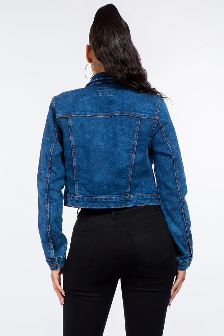 The Classic Slim Fit Knit Denim Jacket will be the talk of the town with its trendsetting style! Lightweight denim shapes this jean jacket with a collared neckline, buttoning pockets and cuffs, front pockets, and a full button placket.