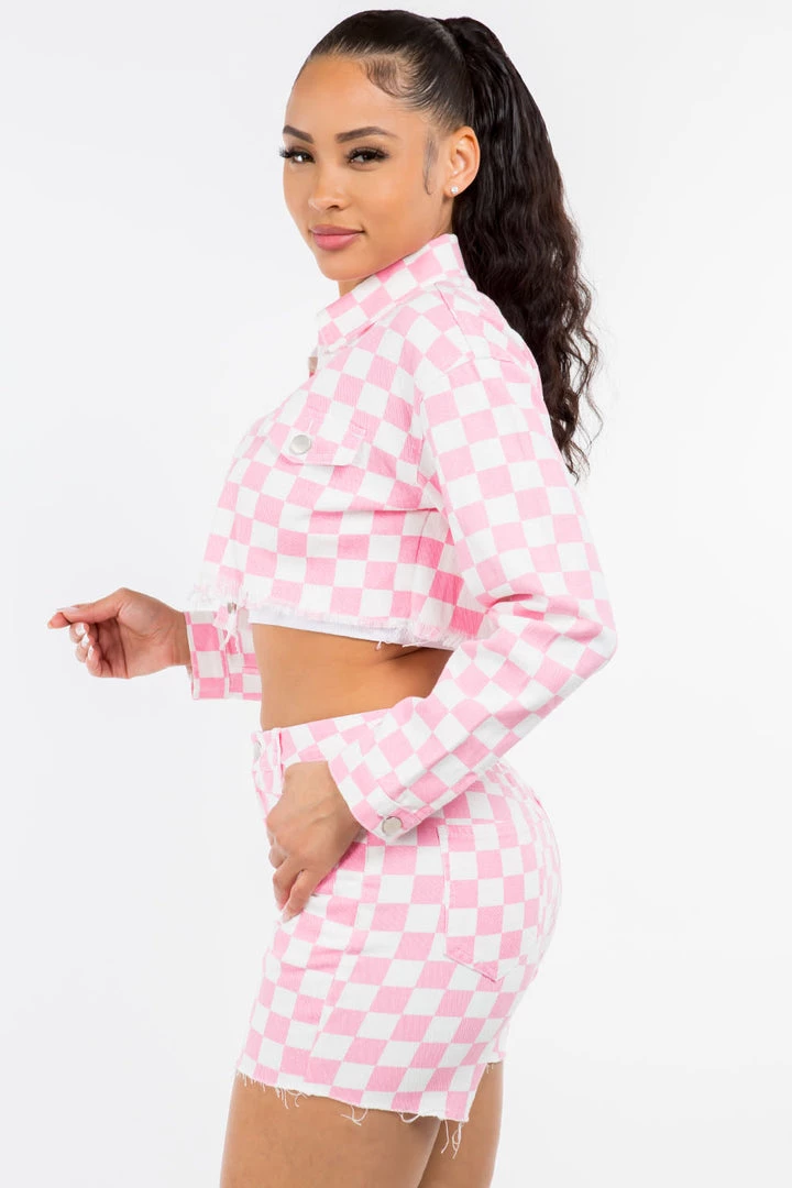Whether you need a festival outfit or a weekend fit, this jacket & short has you covered. With vibrant colors and a cropped natural-cut hem, this is the look you’ve been after.