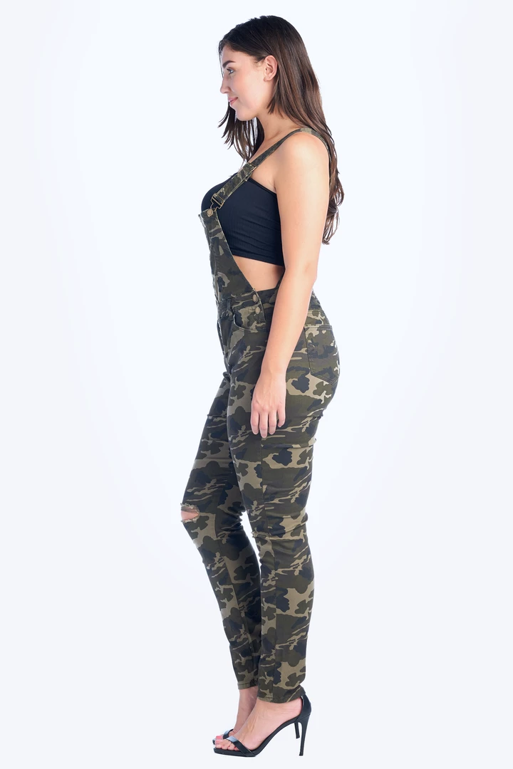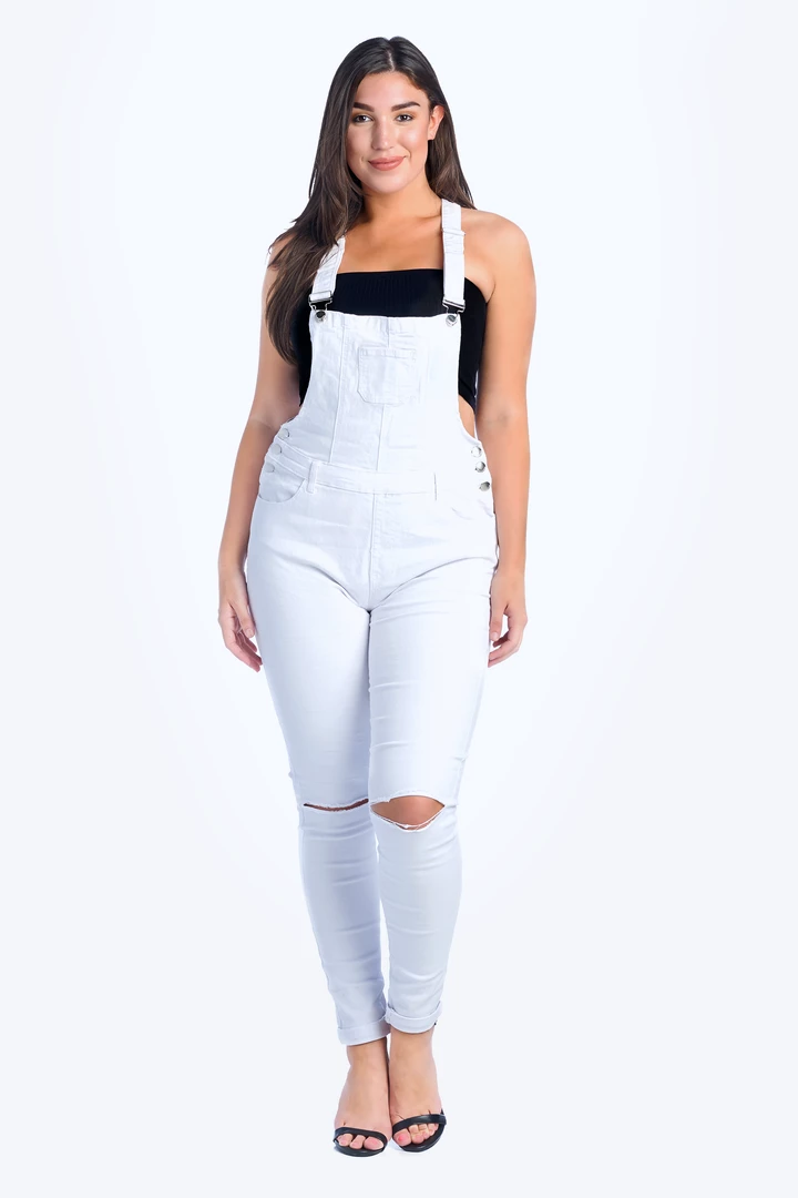 LOVE MODA DISTRESSED Knee Slit Skinny Overalls – Plus Size