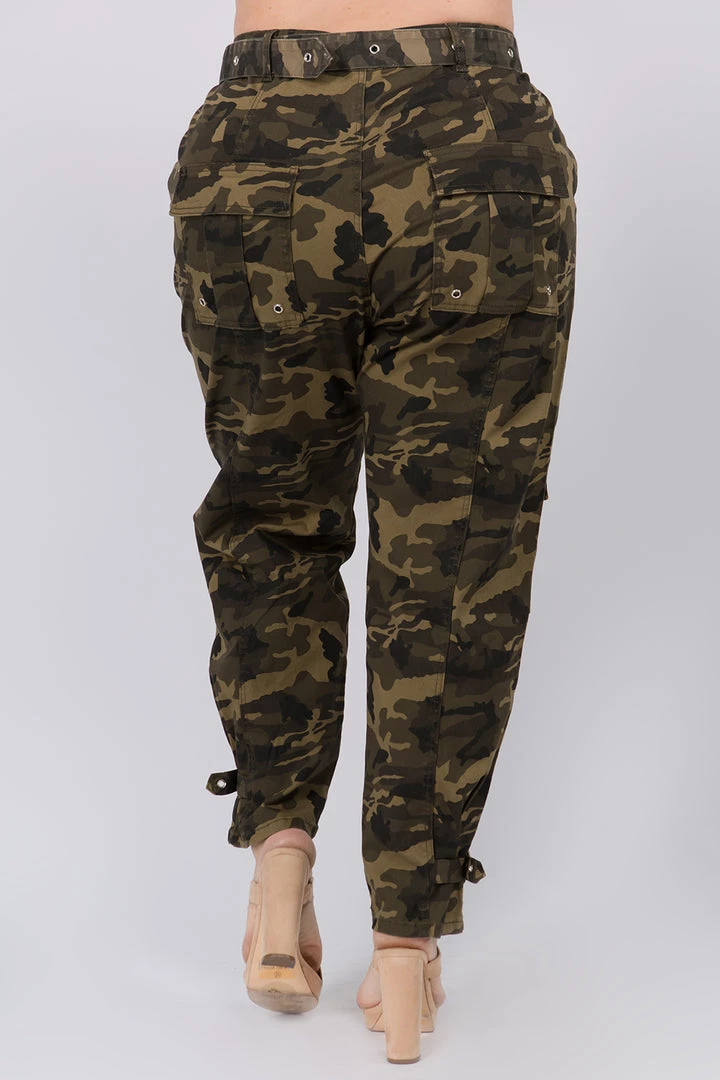 Love Moda High Waist Camo Cargo Pants With Belt – Plus Size