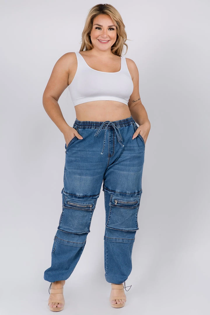 Say hello to your new rest day or travel essential, the High Waist Denim Joggers. In the softest of fabrics and comfy relaxed fit, sit back and relax in these joggers.Â