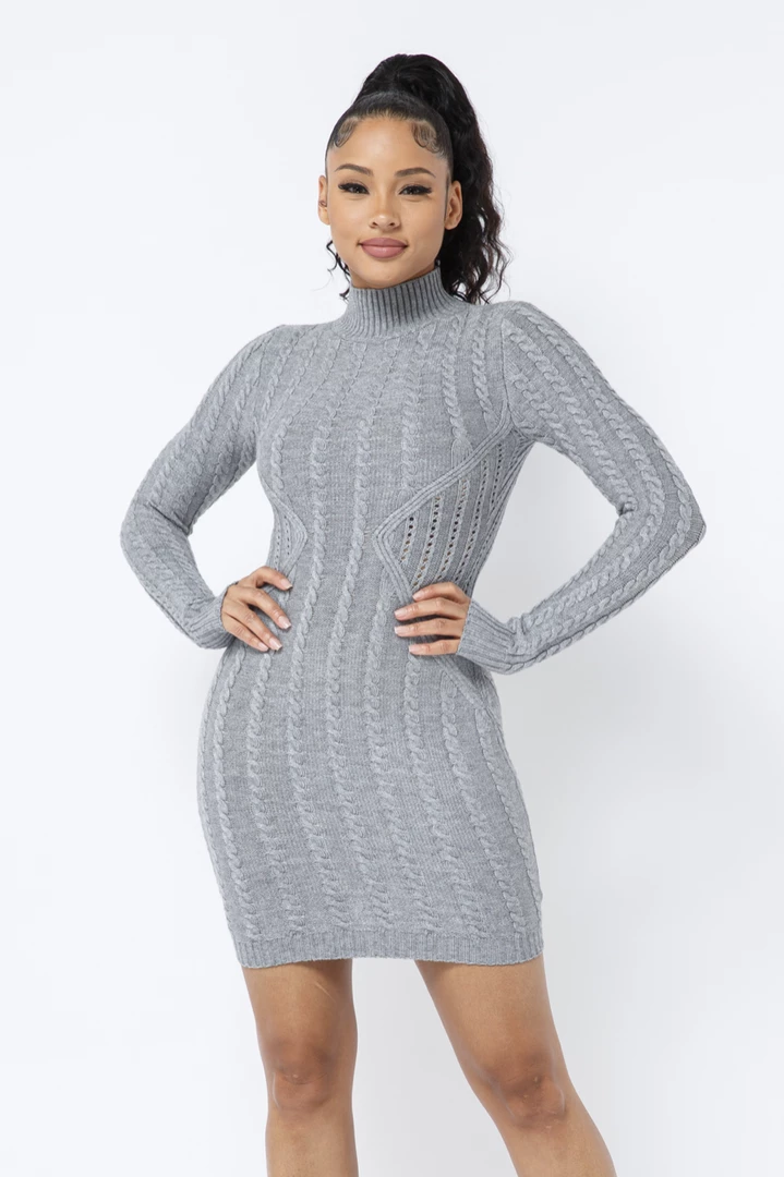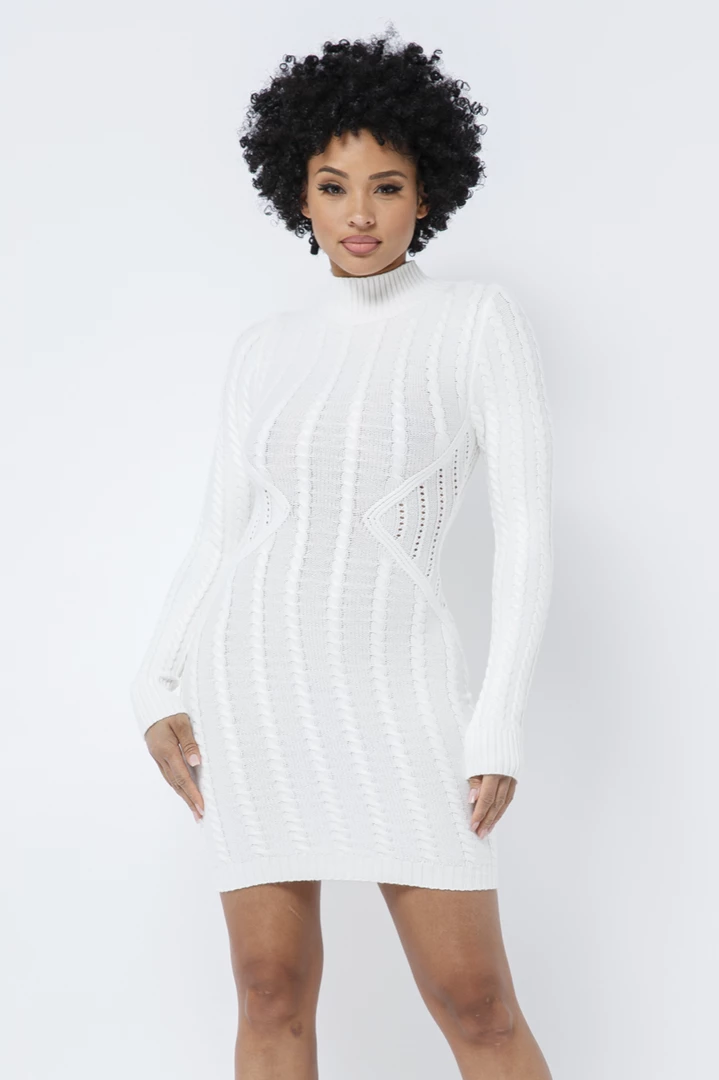 LOVE MODA Long Sleeve Cable Knit Dress DRESSES