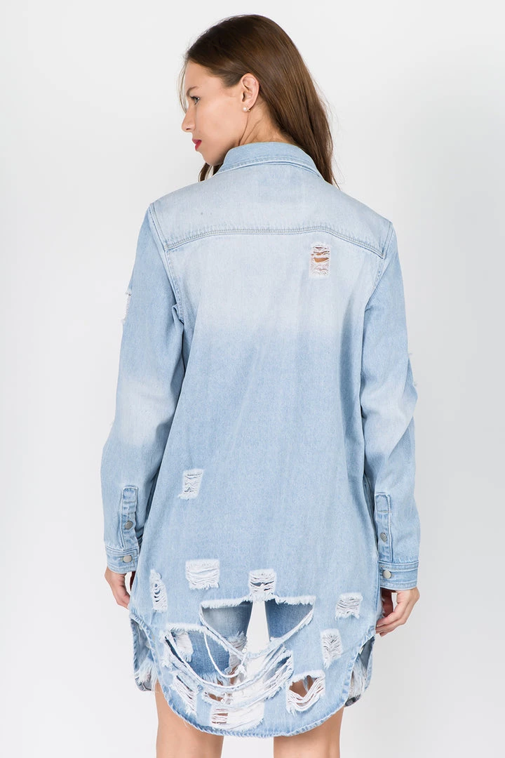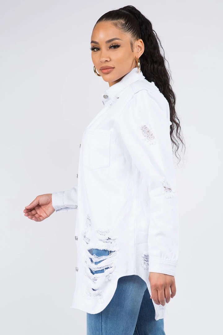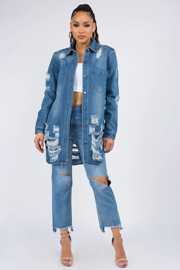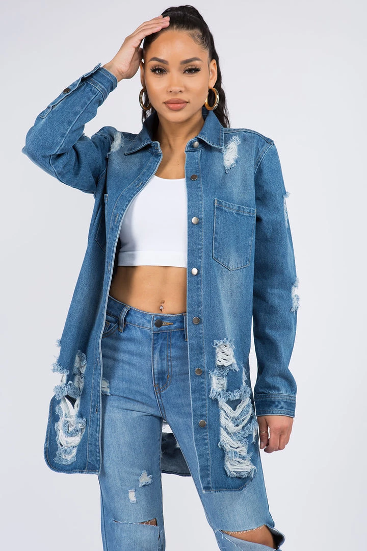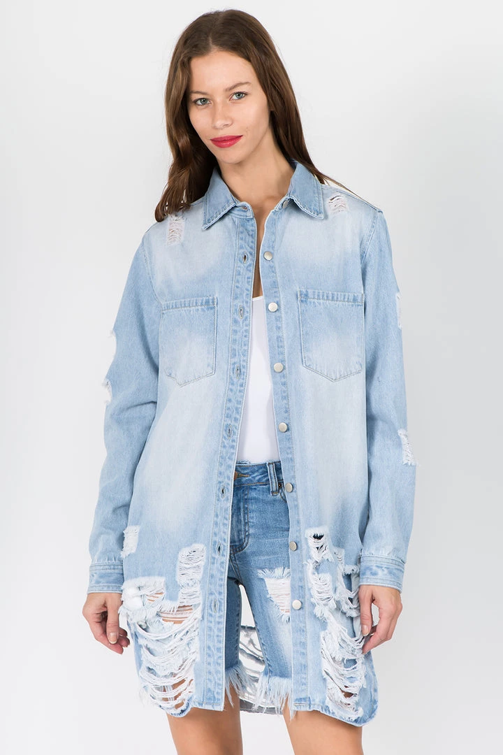 Made of breathable cotton, the Denim Shirt Jacket features a relaxed point collar, a classic button front, two patch pockets and vibrant colors. The best part? It looks good over just about anything.