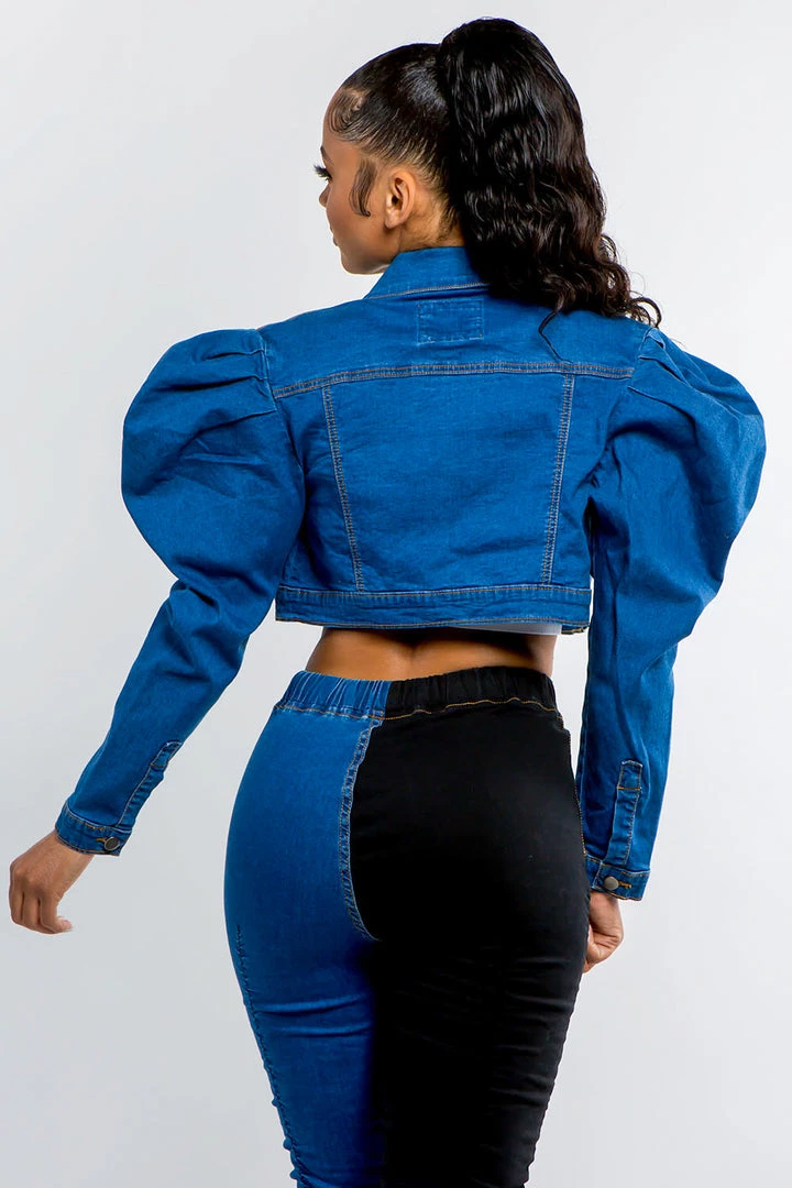Made of 100 percent cotton denim, this jacket has high-volume sleeves with a puff shoulder. A versatile topper that’s a little different from anything else you have in your closet.